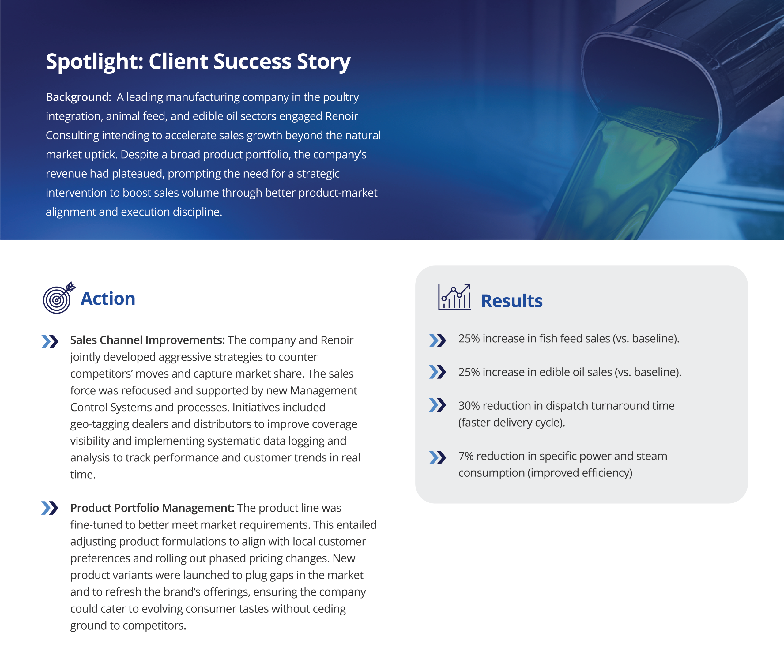 However, strategies and systems alone do not create growth – management discipline and people engagement do. Real change happens when new processes are embraced on the ground. Renoir’s approach has been to embed this kind of cadence and ownership mindset in client organisations, transferring capability to teams so that improvements not only deliver results quickly but also continue long after the consultants have left.